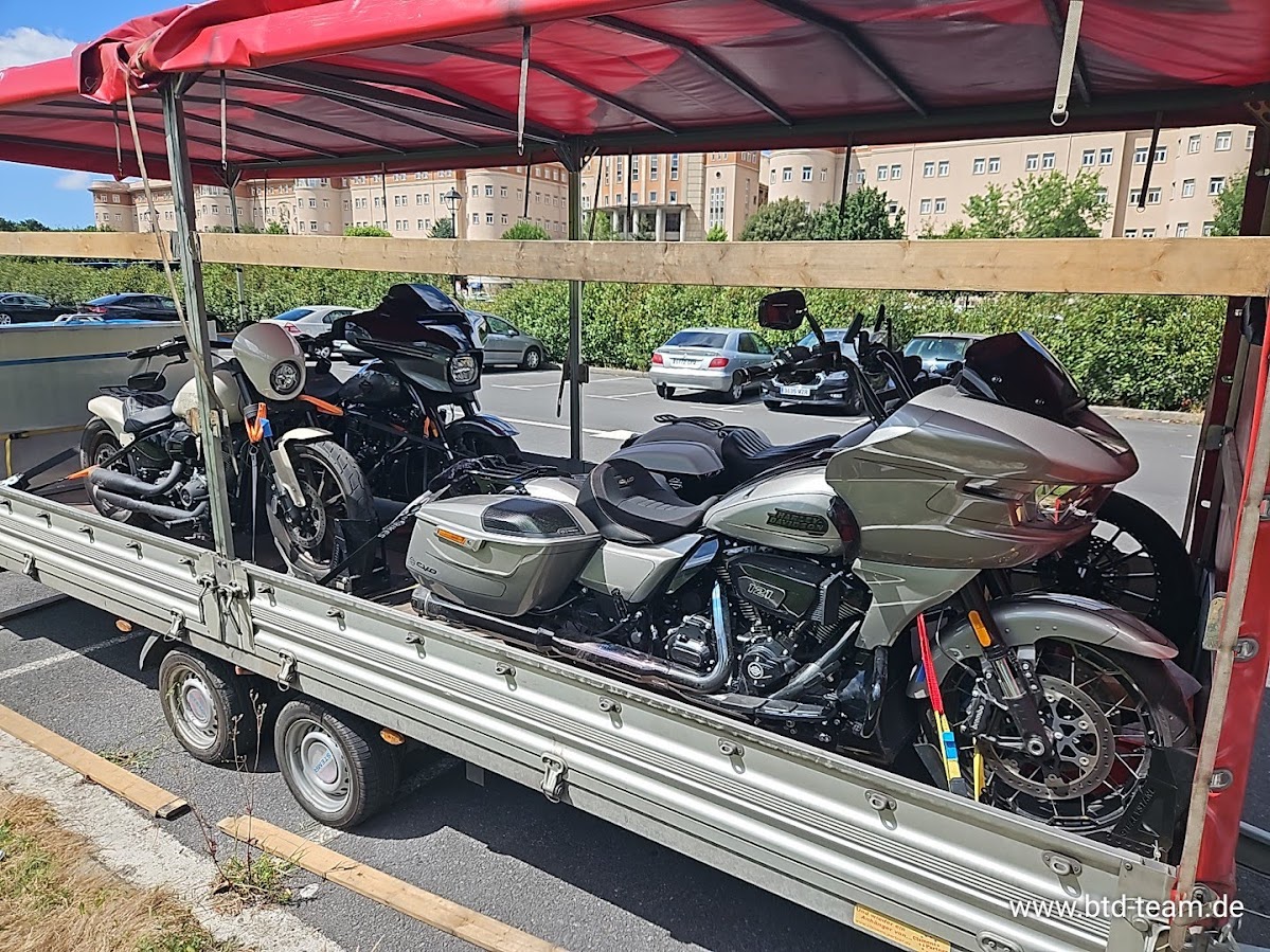 Auch Touren für ganze Gruppen stellen kein Problem dar, wir können bis zu 8 Maschinen auf einmal transportieren. Auf Wunsch sind Ihre Maschinen auch im geschlossenen Anhänger transportierbar.
